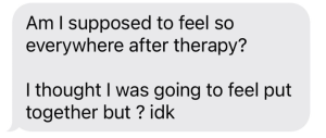 A friend messaged me this the other day and it took me a while to answer because this is a very, very common feeling when you first start therapy—even as a therapist.
